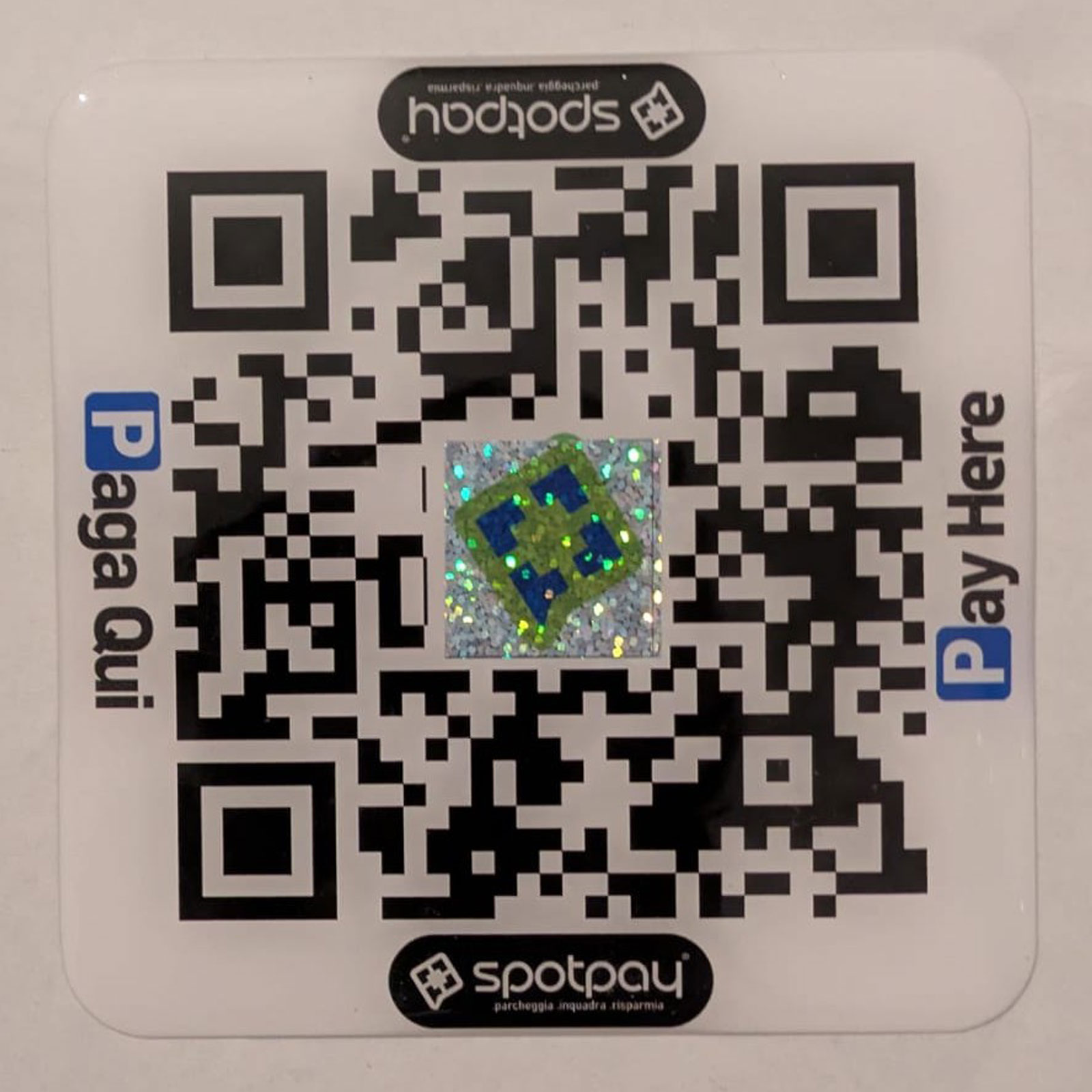 Il modo più importante per evitare truffe è verificare sempre la presenza dell’ologramma SpotPay al centro del QR code. Questo ologramma è il segno di autenticità che distingue i codici originali da quelli falsi.